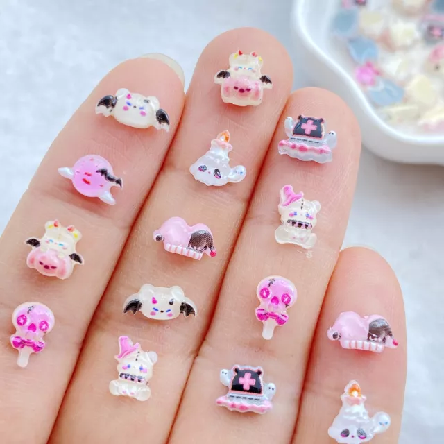 50Pcs Halloween Nail Art Charms – Cute Bat, Skull & Lollipop 3D Resin Decorations