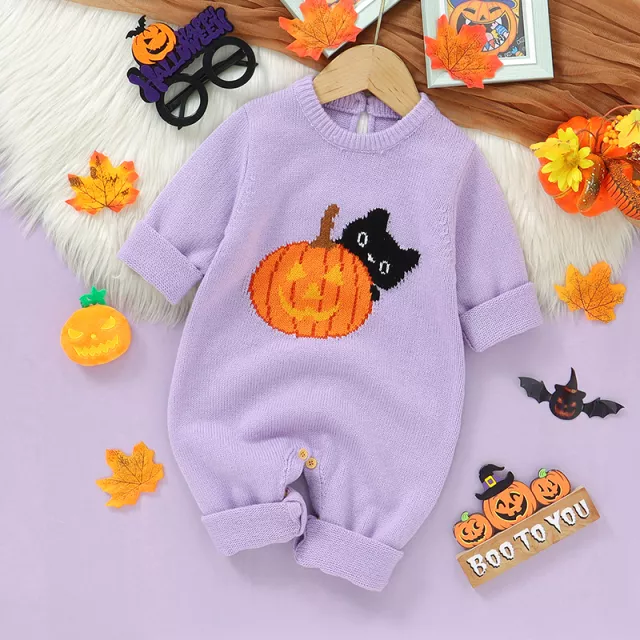 Celebrate the spooky season in style with this cute knitted baby romper. Designed for newborns up to 18 months, this cozy jumpsuit brings comfort and charm together in one adorable outfit. With its playful pumpkin and cat design, it’s the perfect way to dress your little pumpkin for Halloween parties, family photos, or festive days at home.